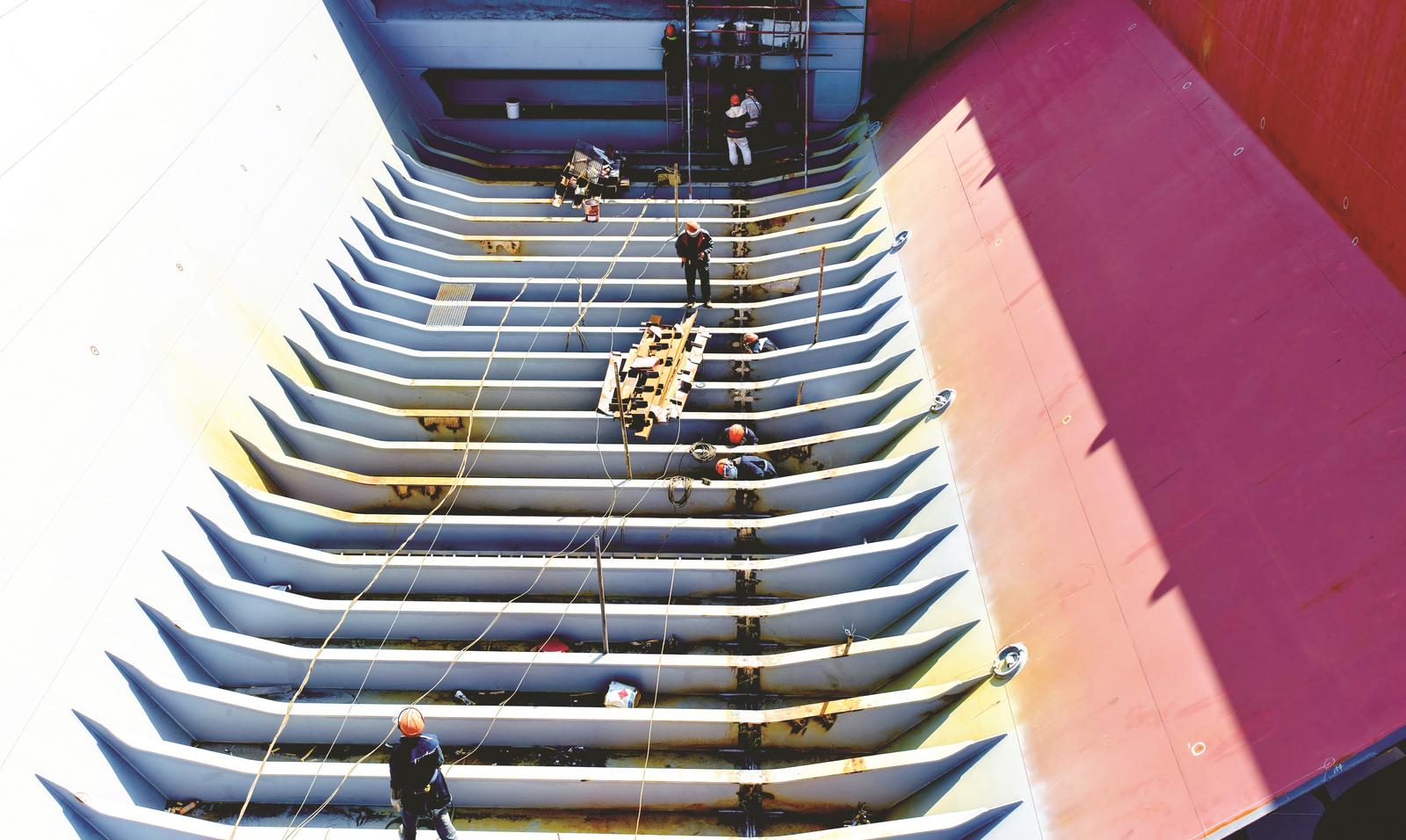 21日,在位于如皋市长江镇的江苏海通海洋工程装备有限公司,工人们正在赶制中外订单产品。据悉,该企业订单已经排至2029年,预计今年交付各型船舶19艘,年造船完工量突破100万载重吨。 记者 许丛军摄