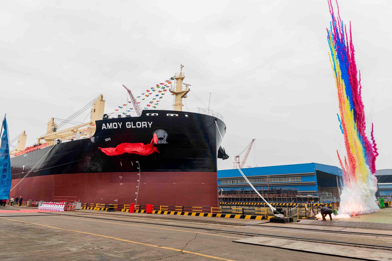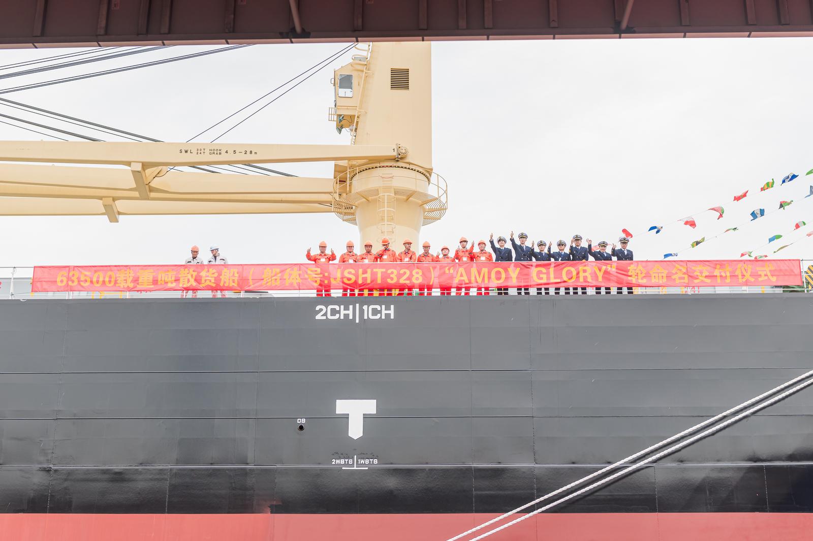 “厦门荣耀”轮的交付,比行业平均坞期缩短了近60%。“以往这类船型,船坞搭载周期普遍需要56天,现在我们只需要22天。”江苏海通行政部部长顾军说。