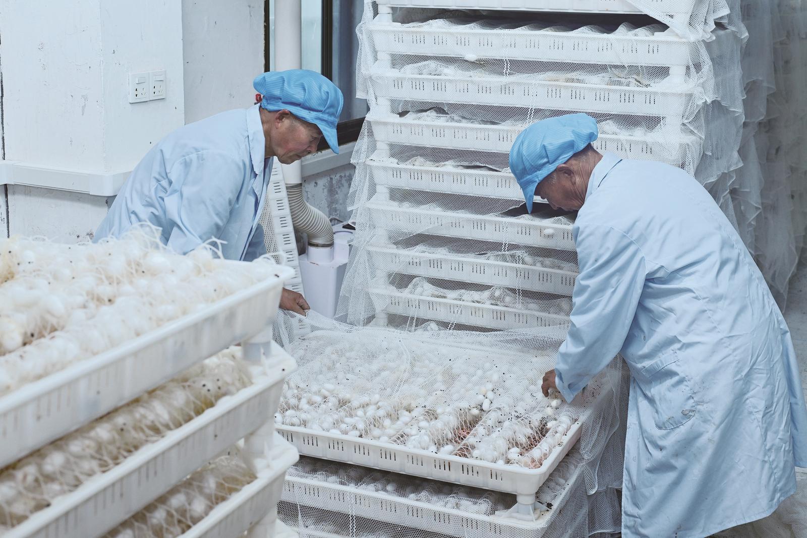 昨天,在海安高新区联合村桑蚕“科技小院”,蚕农正忙着为3.5张纸全龄饲料喂养的春蚕清沙。按当前长势预估,每张纸鲜茧产量有望突破50公斤。近年来,海安以自动化、省力化、智能化、饲料化养蚕技术的研发推广为抓手,创新“建场、组社、联农”发展模式,推动蚕桑产业提质增效。