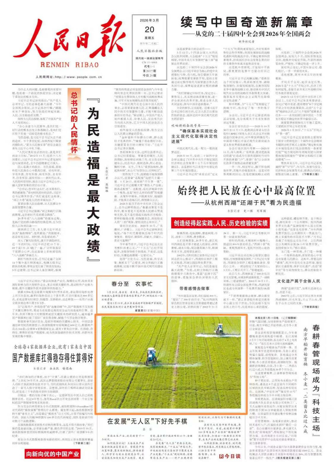 “没想到,我们村春耕的照片能先后登上《人民日报》《新华每日电讯》等多个央媒的头版。”近日,记者走进南通市通州区刘桥镇尹家园村,村党总支书记陈亚飞谈及此事,依旧难掩激动。作为拥有6200亩耕地的典型农业村,尹家园村的农业机械化作业率已达100%,“智慧农业”早已成为村里农业生产的主流趋势。