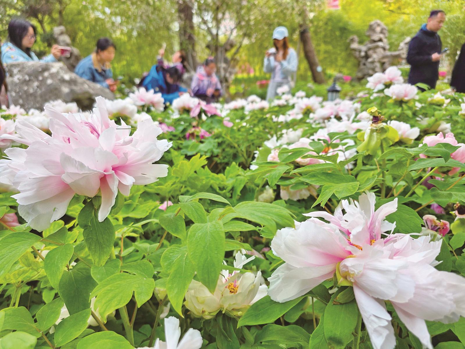 近日,南通博物苑内春花正艳,牡丹、海棠、樱花、桃花等次第绽放、竞相吐蕊,将百年苑囿装点得春意盎然,吸引了众多市民与游客前来踏青赏花、漫步赏景,在繁花盛景中尽享春日美好。 记者许丛军