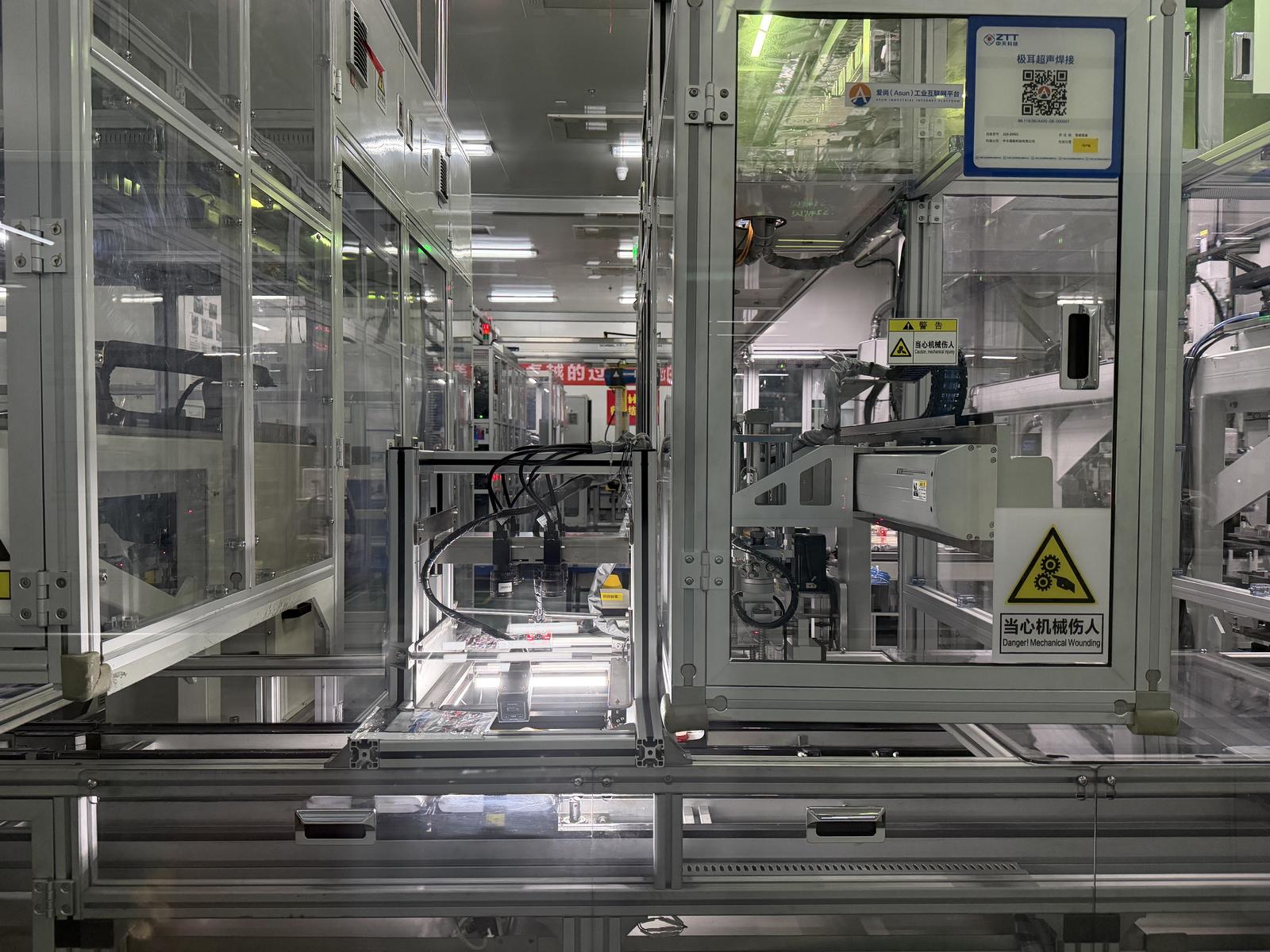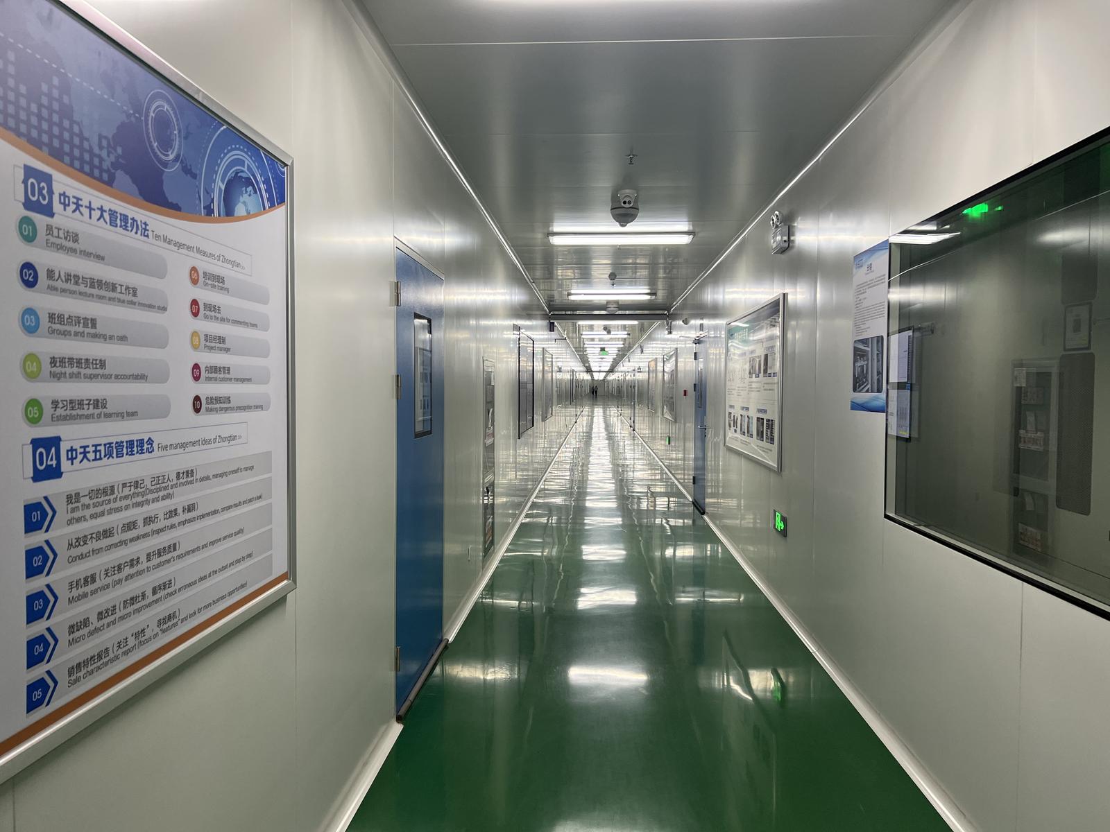 中天储能电芯生产车间走廊。