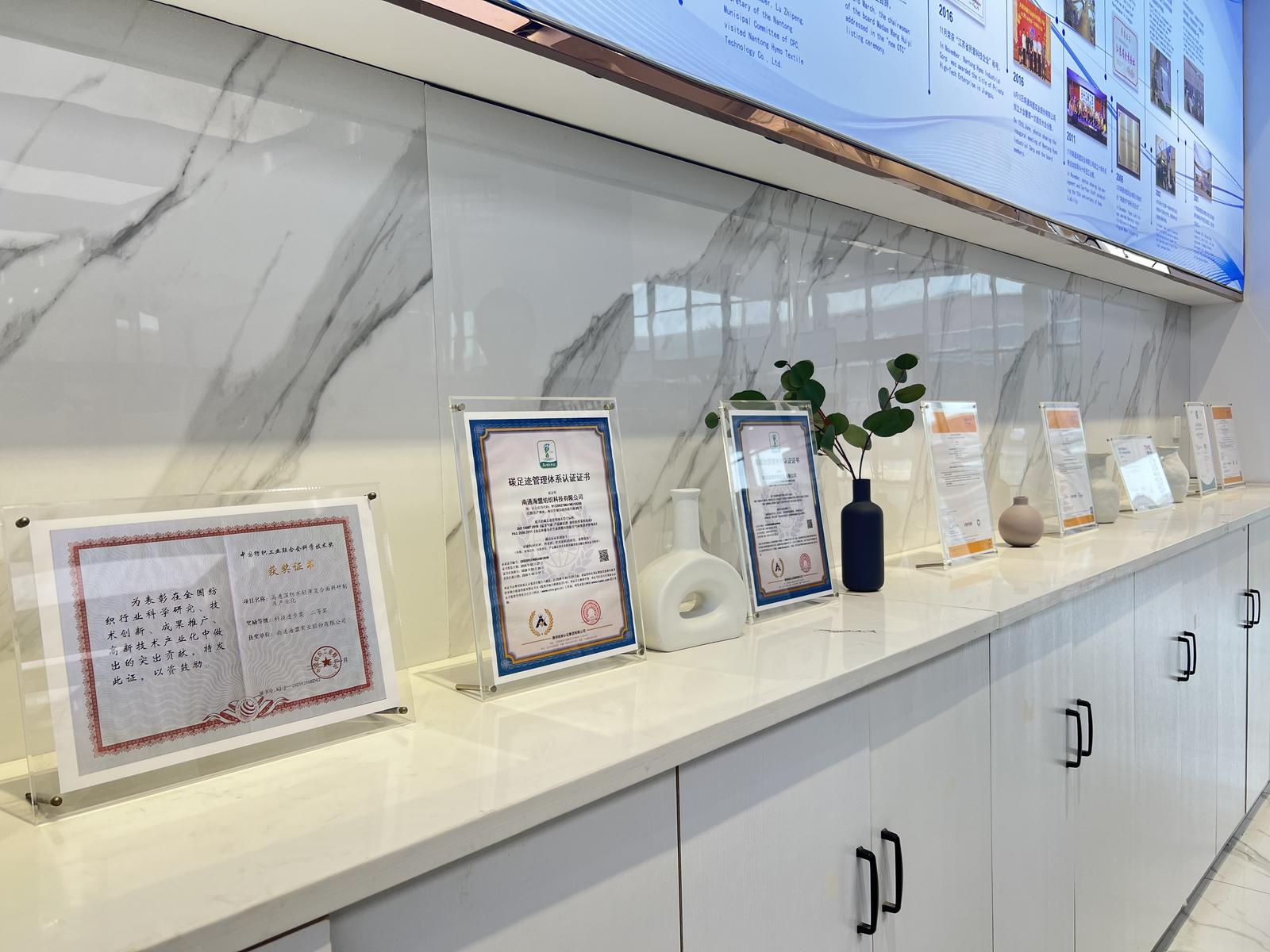 海盟纺织展厅内的荣誉证书。