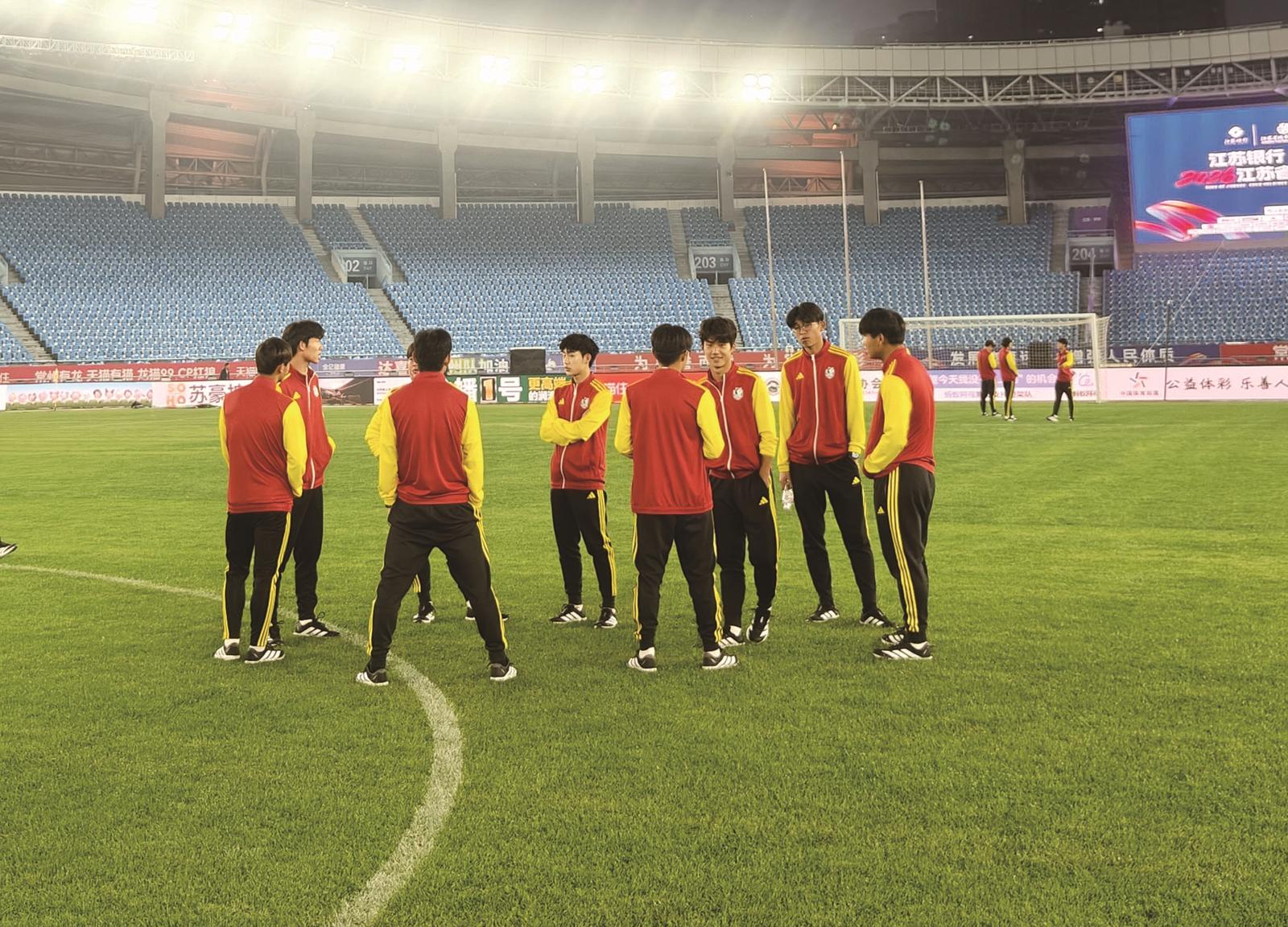 昨晚,南通队在常州奥林匹克体育中心进行适应训练。今晚,2026年江苏省城市足球联赛将拉开帷幕,揭幕战将由常州队主场对阵南通队。