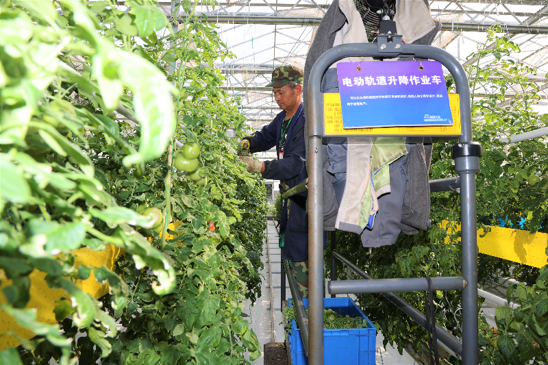 依托全国农村综合性改革试点试验建成的常乐镇A+温室工场,是长三角地区第三个A+温室工场,集科技种植、科普研学、农旅融合于一体,全方位展现现代农业的科技魅力与发展潜力,成为区域现代农业发展的样板。日前,记者走进温室内部,仿佛踏入一座作物的“未来之城”:金属栽培架呈矩阵整齐排布,番茄、草莓等作物并非生长在泥土中,而是扎根于无菌椰糠基质或悬空生长在立体栽培架上,如同住进了“空中公寓”。藤蔓之间,滴灌系统、水肥一体化装置及温控设备精密排布,隐形传感器网络实时采集温度、湿度、光照等生长数据,并同步传输至中央智能管控平台。这个“数字大脑”可根据番茄、草莓的生长情况自动调节各项参数,实现精准灌溉、科学施肥、智能控温,让它们始终处于最佳生长环境。偌大的温室工场,只需三五名工作人员,他们只要站在电动轨道升降作业车上,就能完成整枝、疏花、采摘等培管工作,大幅降低了劳动强度。