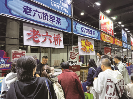 虽然南通此番客场作战,却派出了“精锐部队”。据市商务局相关负责人介绍,南通各县(市、区)板块一个不落,精心选取了35家本地企业参加活动。“选手”个个响当当:东成电动工具、姚记扑克远近闻名;老字号“老六桥”“景福斋”等传统糕点令人垂涎欲滴;鑫缘丝绸、罗化芯显示科技等企业展示了科技力量;家纺“四件套”名企集群出征。从地方特产、非遗好物到智造新品,尽显南通的文化软实力与制造硬实力。