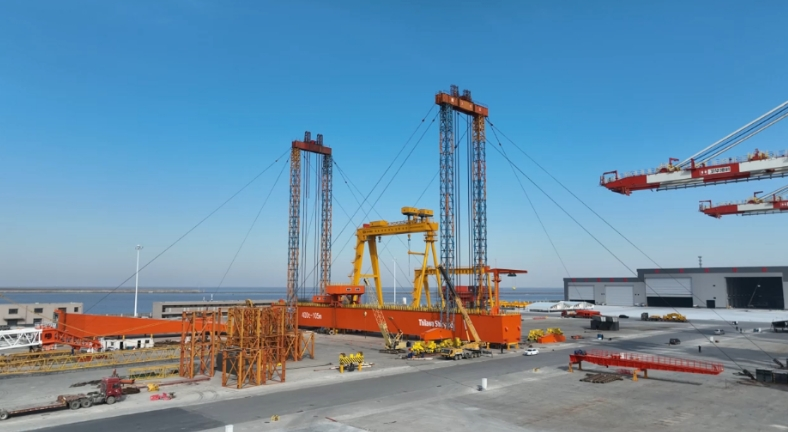 而这套设备的“甲方”就是相距不足2公里的“友邻”——惠生清洁能源启东基地。近在咫尺的距离,带来的是物流成本、运输时长、沟通对接、优化调试等多个环节的便利。这种“近水楼台”的协同,既让惠生的生产如虎添翼,也为卫华海洋带来更多订单。海龙风电的3000t门式起重机,海力风电的3600t门式起重机……“园区九成在建企业都在用卫华的产品。”江苏卫华海洋的掌舵人崔鹏印象深刻。
