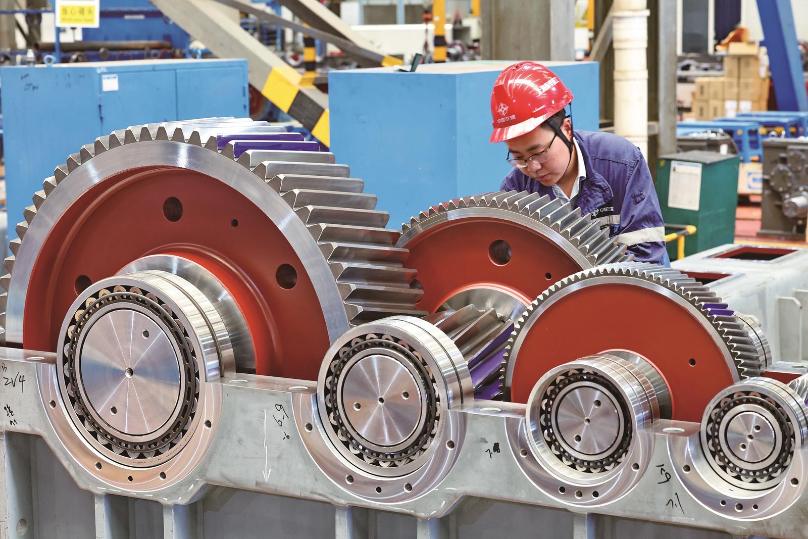 19日,工人在上海振华重工集团(南通)传动机械有限公司装配车间内加工产品。一季度,该公司实现开门红,新签合同额、利润均实现同比增长,交付港机和盾构机减速箱2300余套。 记者 许丛军摄