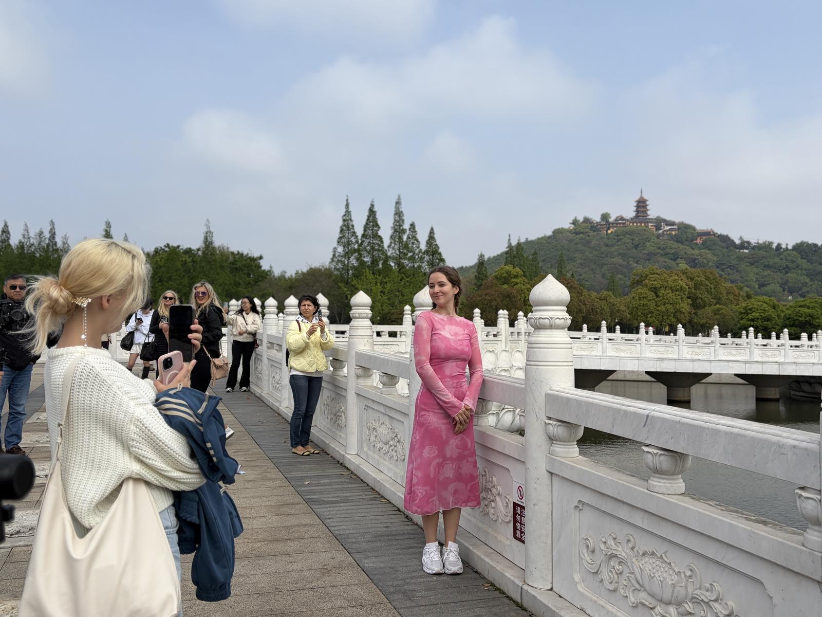 考察团一行从景区南门入园,满目苍翠的山峦与矗立于山巅的支云塔构成的壮阔景致,吸引成员们纷纷驻足拍照。沿步道前行,法乳堂、白雅雨墓等标志性景点逐一呈现,生动诉说着南通城的人文历史故事;行至大观台,长江、五山风光一览无余;再经圆通宝殿登顶,王安石笔下“遨游半在江湖里,始觉今朝眼界开”的意境更加具象化。“我非常喜欢这座城市,这里风景美,沿途还听到不少动人的历史故事,我都第一时间分享给家人和朋友,下次一定要带他们再来南通游玩。”来自俄罗斯的旅行博主小娜由衷地表示。