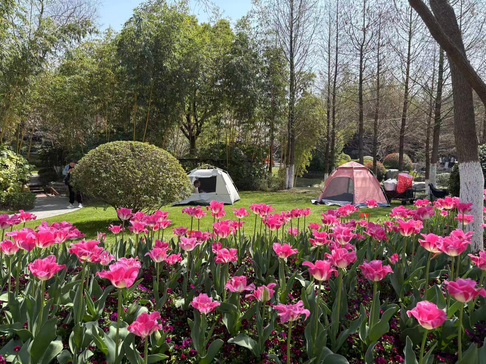 市区唐闸公园、军山绿野、通吕运河绿廊等露营点位,每逢周末及节假日便帐篷林立、人气鼎盛。绿树繁花之间,市民或野餐小聚、或亲子嬉戏、或静坐赏花,尽情拥抱自然春光。“如今在家门口就能拥有优质的露营场地,花开景美、环境宜人,周末不用远走,就能放松身心。”露营的市民李先生感慨道。