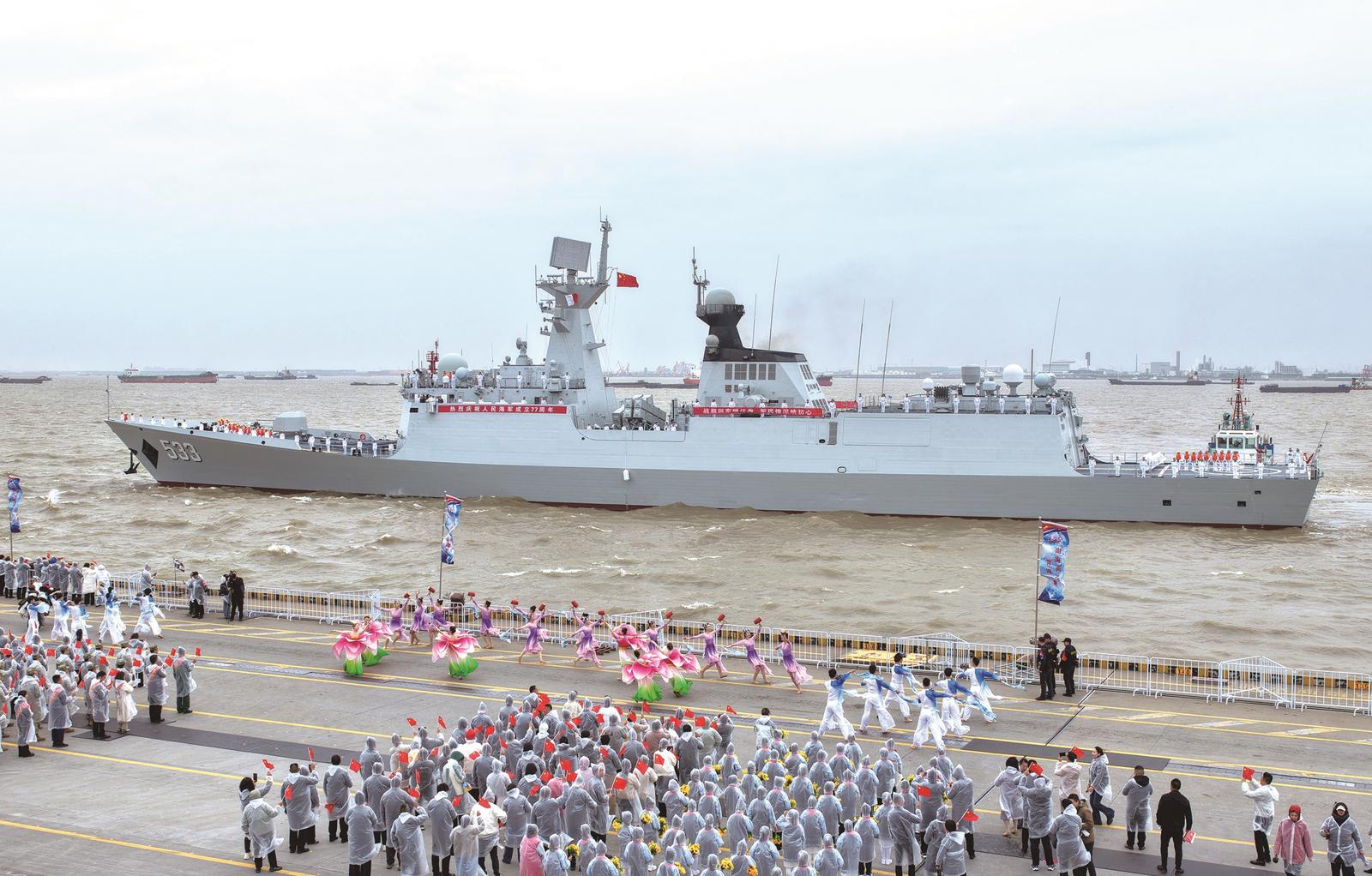在人民海军成立77周年之际,21日下午,海军南通舰抵达南通。我市举行“战舰回家乡”欢迎仪式,开启双拥共建系列活动,这也是南通舰首次回到南通开展军地共建及公众开放活动。记者 许丛军