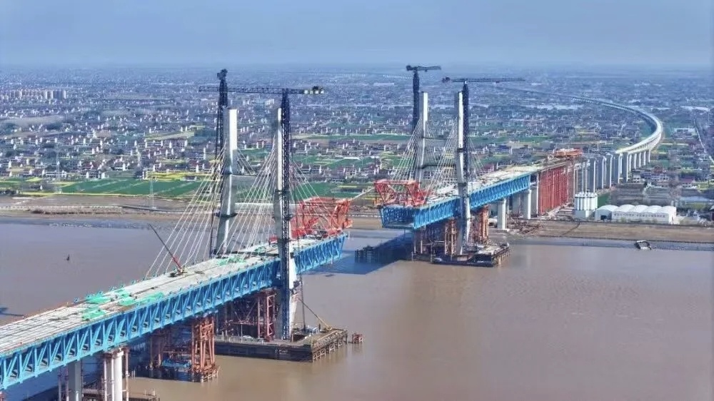 近日,沪渝蓉高铁崇启公铁长江大桥主桥钢桁梁吊装顺利完成,建设者正朝主桥合龙冲刺。这座世界最大跨度公铁两用无砟轨道斜拉桥,将推动“沪启同城”从愿景驶入现实。建成后,启东至上海车程将缩短至25分钟,长江天堑变坦途。