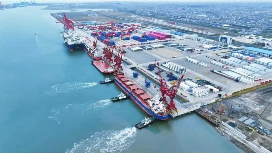 开港运营以来,吕四起步港区的成长速度令人振奋。2025 年,港区集装箱吞吐量超20万标箱,同比增长33%;件杂货吞吐量突破500万立方米,同比激增73%。今年一季度,吕四港件杂货吞吐量同比增长1.2倍,集装箱吞吐量突破5.33万标箱。从内贸支线到远洋干线,从“沪通快航”常态开行,到南通首条通往北非红海的远洋航线顺利开通,港口航线已通达全球40多个国家和地区。