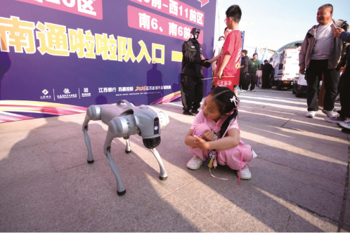 “请注意,充电宝、保温杯、打火机等均不能带入,场内设有免费饮水点。”在南通体育会展中心北广场宣防点,身着警服的人形机器人成为“明星担当”。它具备高自由度全身运动能力与全场景智能交互功能,不仅能敬礼、握手,一展矫健身手,还能通过智能语音系统,面对面为市民讲解反诈知识等,配合民警完成现场引导、便民服务等工作。